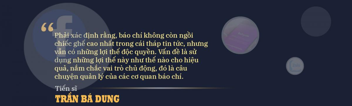 Tiến sĩ Trần Bá Dung: Phải khẳng định rằng báo chí hoàn toàn có thể đáp ứng được nhu cầu thông tin của mọi lứa tuổi, bởi bên cạnh những thách thức như đã trao đổi ở trên thì báo chí vẫn sở hữu rất nhiều lợi thế. Trước hết, về thông tin đầu nguồn thì rõ ràng báo chí mạnh hơn mạng xã hội; các cơ quan công quyền sẽ chỉ cung cấp thông tin chính thống cho các cơ quan báo chí theo quy định của pháp luật.