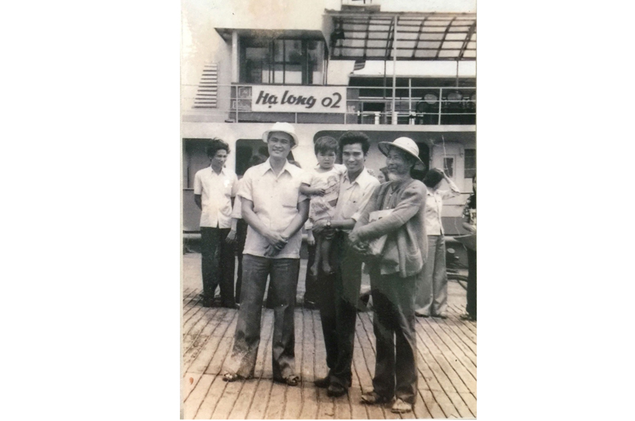Nhà văn Nguyên Hồng (ngoài cùng bên phải) tham quan Vịnh Hạ Long (tháng 4/1982). Ảnh tư liệu.