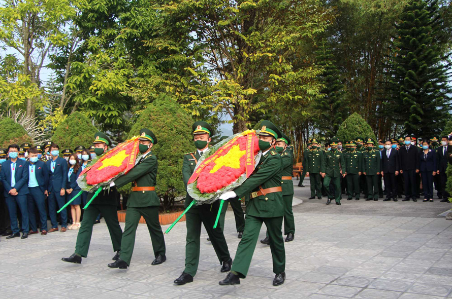 Các đại biểu đặt vòng hoa tại Đài tưởng niệm anh hùng liệt sĩ Pò Hèn.