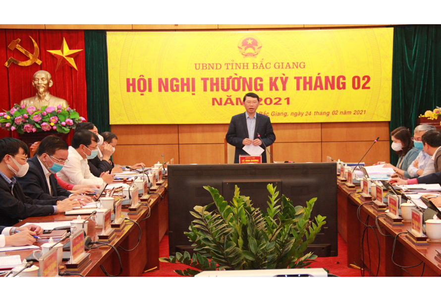 Chủ tịch UBND tỉnh Lê Ánh Dương phát biểu tại Hội nghị thường kỳ tháng 02 năm 2021.