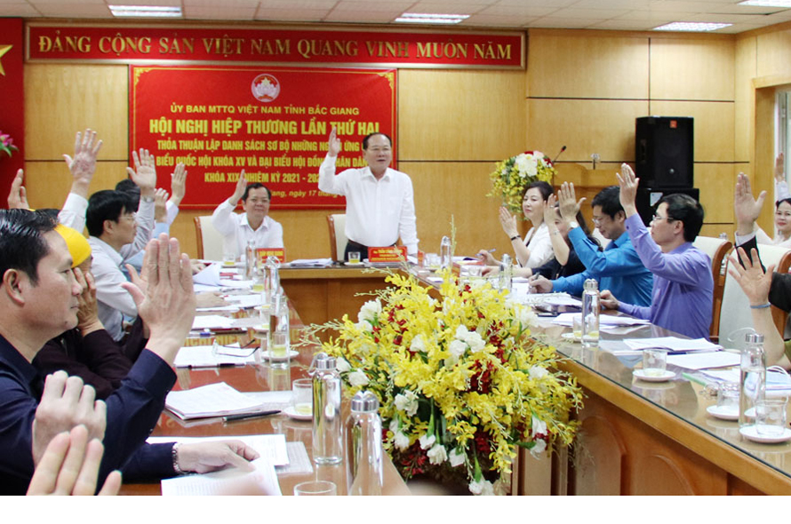 Sáng 17/3, Ủy ban Mặt trận Tổ quốc (MTTQ) Việt Nam tỉnh Bắc Giang tổ chức Hội nghị hiệp thương lần thứ hai thỏa thuận lập danh sách sơ bộ những người ứng cử đại biểu Quốc hội khóa XV, đại biểu hội đồng nhân dân (HĐND) tỉnh khóa XIX nhiệm kỳ 2021 – 2026.