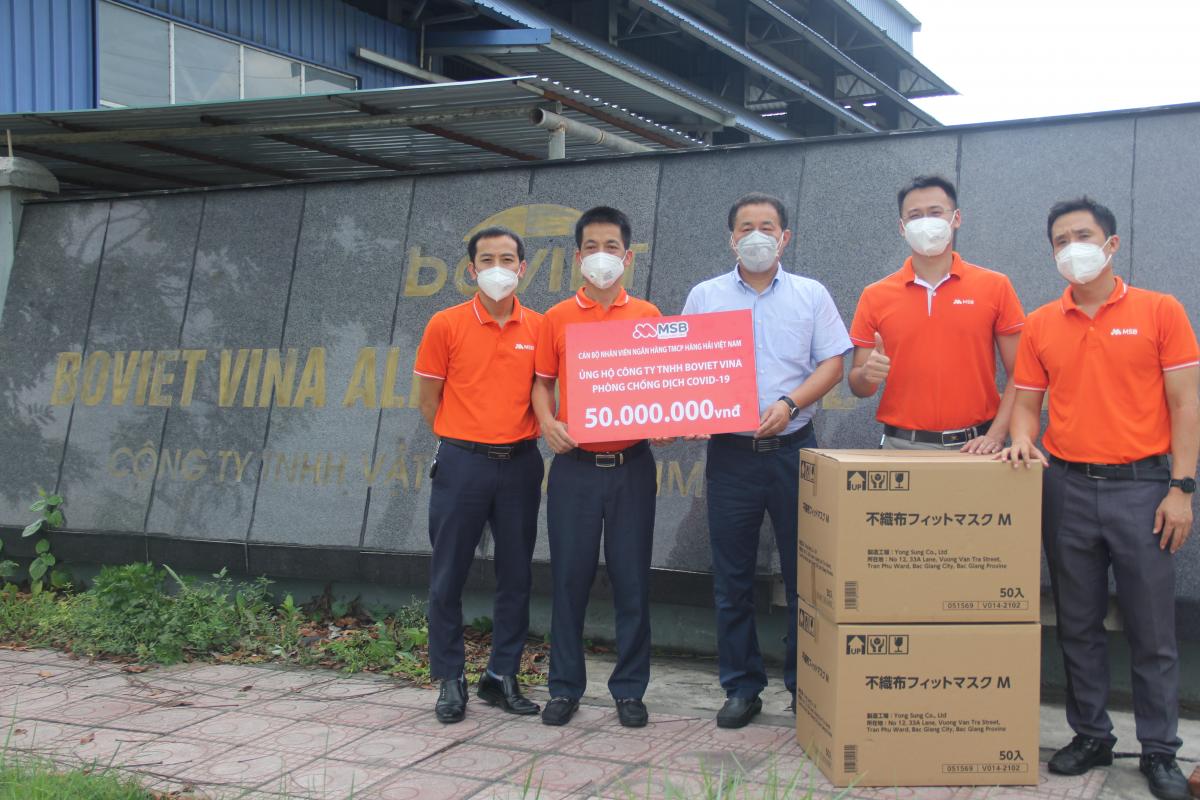 Phần quà trên do cán bộ, nhân viên, người lao động của toàn hệ thống MSB trên cả nước quyên góp, ủng hộ. Trước đó, công đoàn, người lao động của MSB Bắc Giang cũng đã ủng hộ nhân dân tỉnh Bắc Giang ngay khi dịch Covid-19 bùng phát 13 triệu đồng; MSB ủng hộ Quỹ Vaccine 50 tỷ đồng.
