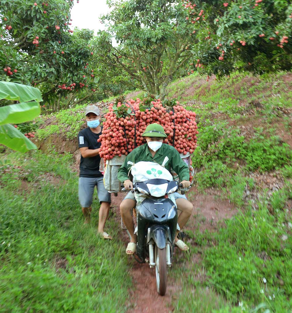 Những chuyến xe vải thiều đạt tiêu chuẩn xuất khẩu được vận chuyển tới điểm thu mua.