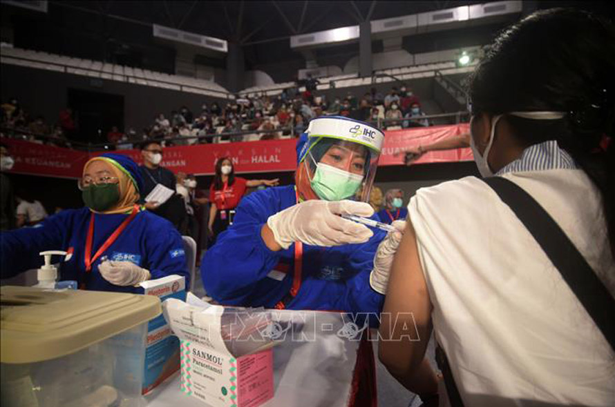 Nhân viên y tế tiêm vaccine phòng COVID-19 cho người dân tại Jakarta, Indonesia. Ảnh: THX/TTXVN
