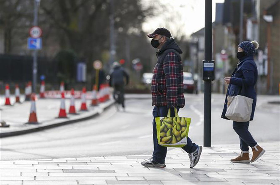 Người dân đeo khẩu trang phòng dịch COVID-19 khi lưu thông trên đường phố ở Kingston, Anh ngày 21/1/2021. Ảnh: THX/TTXVN