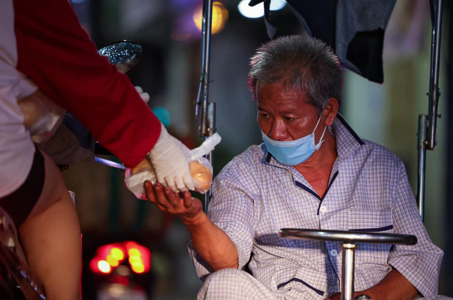 Trong những ngày này, nhiều hoàn cảnh vô gia cư, khó khăn ở Sài Gòn được các nhà hảo tâm đến tặng thức ăn mỗi ngày. ẢNH: MAI THANH HẢI