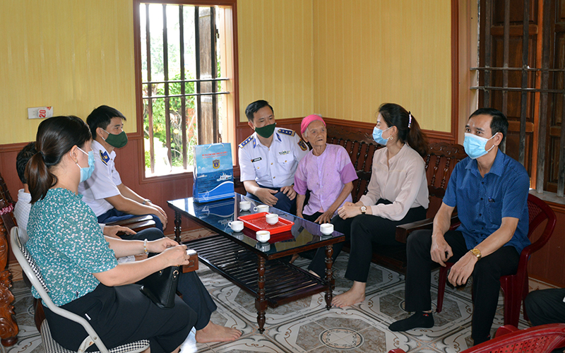 Đoàn công tác Bộ Tư lệnh Vùng Cảnh sát biển 1 thăm hỏi, tặng quà gia đình chính sách tại xã Cao Minh, huyện Vĩnh Bảo (Hải Phòng). Ảnh: TTXVN