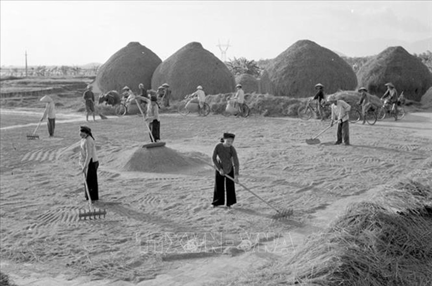 Thành công của công tác tuyên giáo giai đoạn 1965 – 1975 là tiếp tục đẩy mạnh các phong trào thi đua yêu nước, động viên đồng bào, chiến sĩ cả nước hăng hái lao động, sản xuất, chiến đấu. Trong ảnh: Từ 1963 – 1966, tỉnh Vĩnh Phúc thực hiện thí điểm “khoán hộ”, tiến tới thực hiện NQ 68 của Tỉnh ủy ngày 10/9/1966, đem lại năng suất lao động ngày càng cao trong nông nghiệp, là cơ sở để sau này Đảng ta ra Chỉ thị 100-CT/TW và Nghị quyết 10-NQ/TW về đổi mới quản lý kinh tế nông nghiệp. Ảnh: Phạm Tuệ/TTXVN