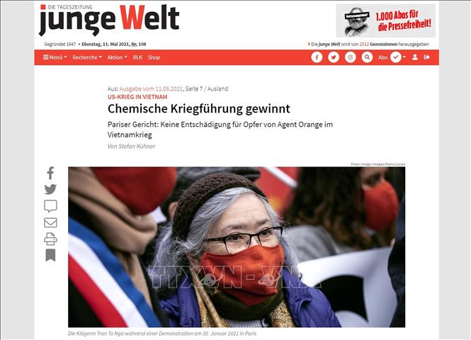 Báo Thế giới trẻ (Junge Welt) đưa tin về vụ kiện của bà Trần Tố Nga. Ảnh: Mạnh Hùng/TTXVN
