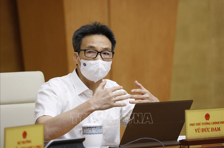 Phó thủ tướng Vũ Đức Đam, Trưởng Ban Chỉ đạo Quốc gia phòng, chống dịch Covid-19 phát biểu. Ảnh: TTXVN