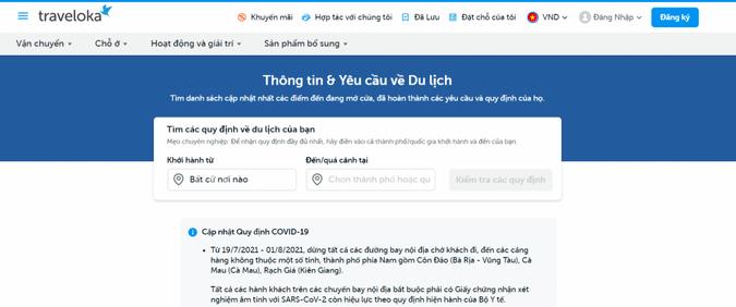Tra cứu quy định về du lịchtrên trang Traveloka chính là gợi ý cho bạn.Bạn chỉ cần truy cập trang https://www.traveloka.com/vi-vn/flight/safe-travel, chọn điểm khởi hành và điểm đến; sau đó nhấp vào “Kiểm tra quy định” là có ngay kết quả trong “1 nốt nhạc”.