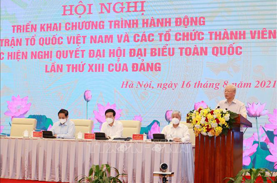 Trước yêu cầu của sự nghiệp đổi mới, công nghiệp hóa, hiện đại hóa, xây dựng và bảo vệ đất nước theo tinh thần của Cương lĩnh chính trị, các văn kiện quan trọng khác mà Đại hội XIII của Đảng vừa quyết định đang đặt ra cho toàn Đảng, toàn dân và toàn quân ta những nhiệm vụ nặng nề nhưng rất vẻ vang. Tổng Bí thư Nguyễn Phú Trọng lưu ý, với vai trò là tổ chức đại diện của nhân dân, là một bộ phận cấu thành quan trọng trong hệ thống chính trị ở nước ta, Mặt trận Tổ quốc Việt Nam, các tổ chức thành viên cần làm tốt hơn nữa vai trò là nòng cốt chính trị, có trách nhiệm vẻ vang trong xây dựng khối đại đoàn kết toàn dân tộc, tập hợp, vận động nhân dân đẩy mạnh các phong trào thi đua yêu nước, thực hành dân chủ, xây dựng đồng thuận xã hội để góp phần thực hiện thắng lợi các mục tiêu chính trị của đất nước trong giai đoạn mới. Đảng lãnh đạo, Nhà nước quản lý, Nhân dân làm chủ phải là ba chân kiềng vững chắc của sự nghiệp xây dựng và bảo vệ đất nước ta, Tổ quốc ta.
