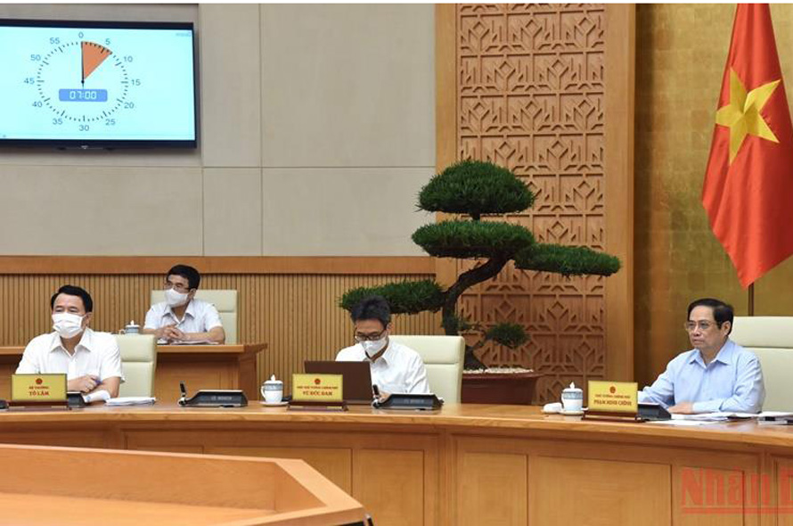 Sáng 17/8, tại Trụ sở Chính phủ, Thủ tướng Phạm Minh Chính chủ trì phiên họp Chính phủ chuyên đề xây dựng pháp luật tháng 8/2021. Cùng dự có các Phó Thủ tướng Vũ Đức Đam, Lê Văn Thành.