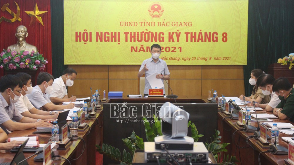 Sáng 20/8, đồng chí Lê Ánh Dương, Chủ tịch UBND tỉnh Bắc Giang chủ trì hội nghị thường kỳ tháng 8 của UBND tỉnh. Cùng dự có các đồng chí: Lâm Thị Hương Thành, Phó Chủ tịch Thường trực HĐND tỉnh; Mai Sơn, Phó Chủ tịch Thường trực UBND tỉnh cùng lãnh đạo các sở, ngành tỉnh.