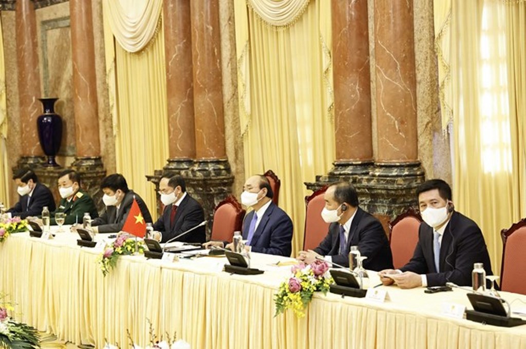 Chủ tịch nước Nguyễn Xuân Phúc bày tỏ cảm ơn Chính phủ và nhân dân Hoa Kỳ đã có những hỗ trợ ý nghĩa, kịp thời, đặc biệt là 5 triệu liều vaccine phòng COVID-19 và nhiều thiết bị vật tư y tế khác.