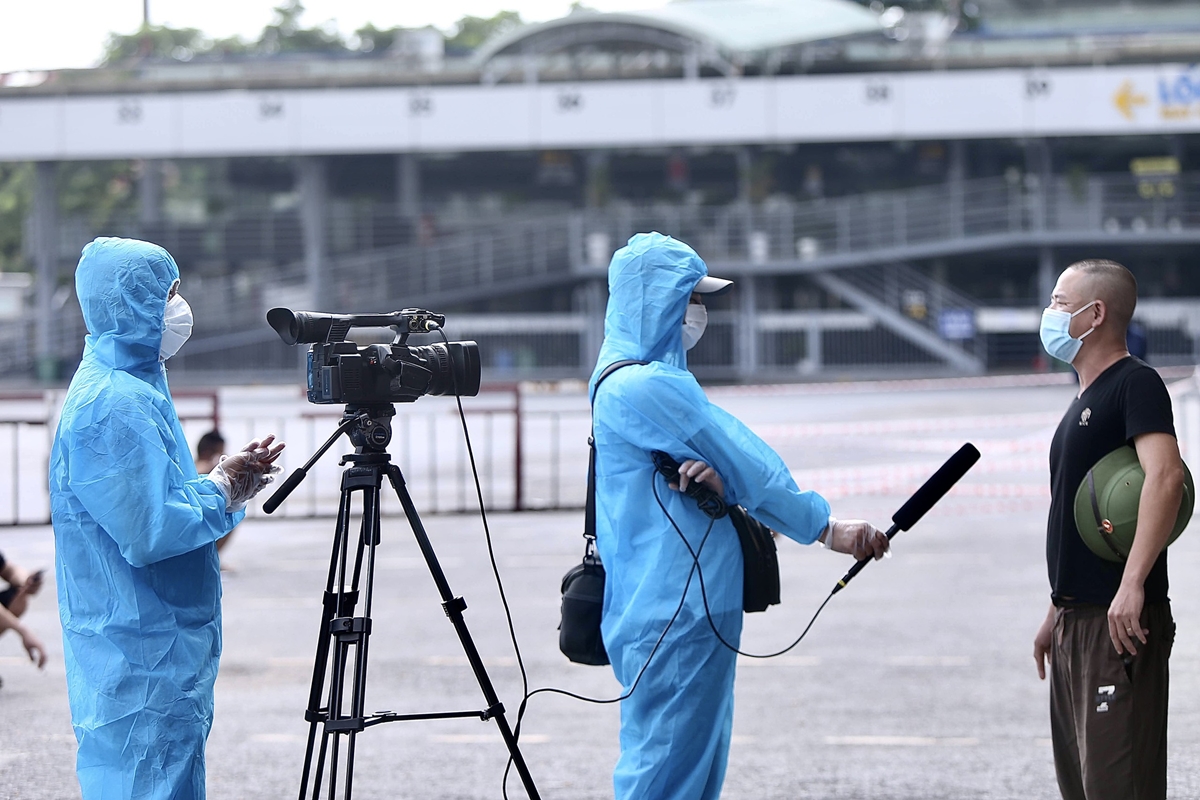 Nhắc đến tác nghiệp mùa dịch, không thể không nhắc đến các anh chị báo chí, truyền hình đang tác nghiệp tại tâm dịch TP.HCM. Ảnh: NVCC