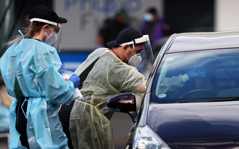 Nhân viên y tế lấy mẫu xét nghiệm Covid-19 cho người dân tại thành phố Auckland, New Zealand. (Ảnh: Reuters)
