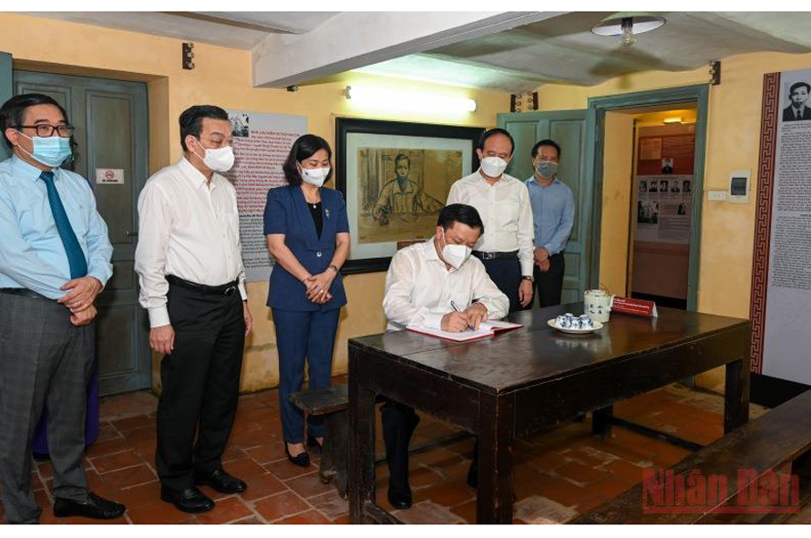 Thay mặt đoàn, Bí thư Thành ủy Hà Nội Đinh Tiến Dũng đã xúc động viết vào sổ lưu niệm của Di tích nhà số 90 phố Thợ Nhuộm, bày tỏ lòng biết ơn công lao, đóng góp của đồng chí Trần Phú đối với sự nghiệp cách mạng của Đảng và dân tộc.