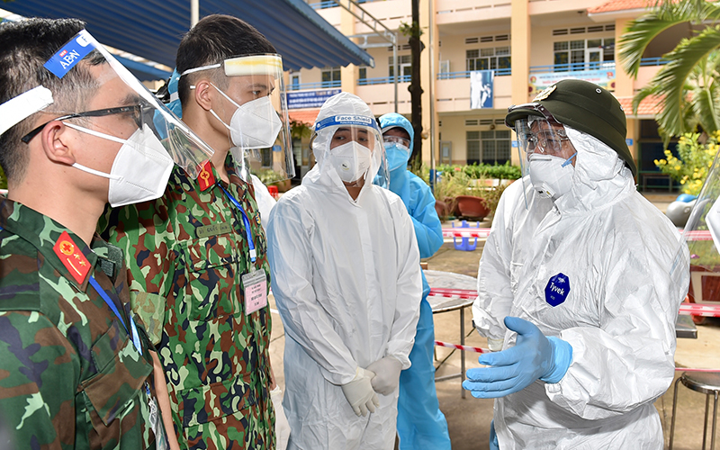 Thủ tướng Phạm Minh Chính (ngoài cùng bên phải) kiểm tra một trạm y tế lưu động tại TP Hồ Chí Minh, ngày 26/8 vừa qua.