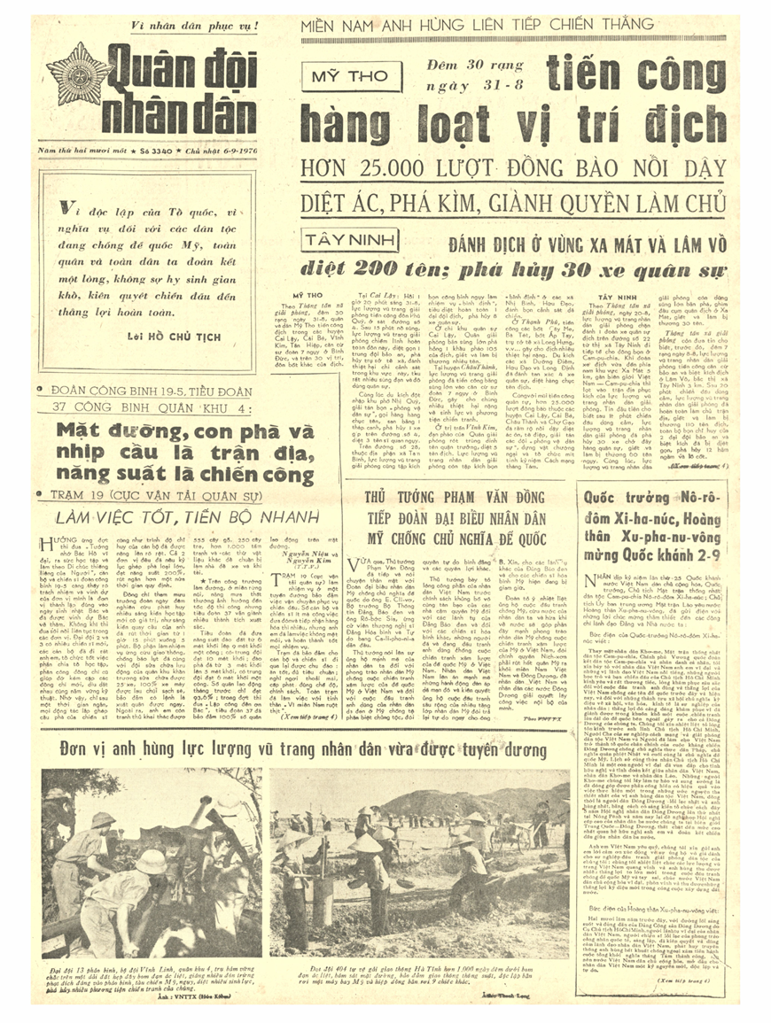 Ngày 6-9-1970, trang nhất Báo Quân đội nhân dân đã đăng lời kêu gọi của Bác: “Vì độc lập của Tổ quốc, vì nghĩa vụ đối với các dân tộc đang chống đế quốc Mỹ, toàn quân và toàn dân ta đoàn kết một lòng, không sợ hy sinh gian khổ, kiên quyết chiến đấu đến thắng lợi hoàn toàn.”