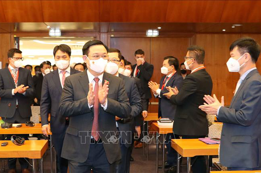 Chủ tịch Quốc hội Vương Đình Huệ và đại biểu chụp ảnh chung.