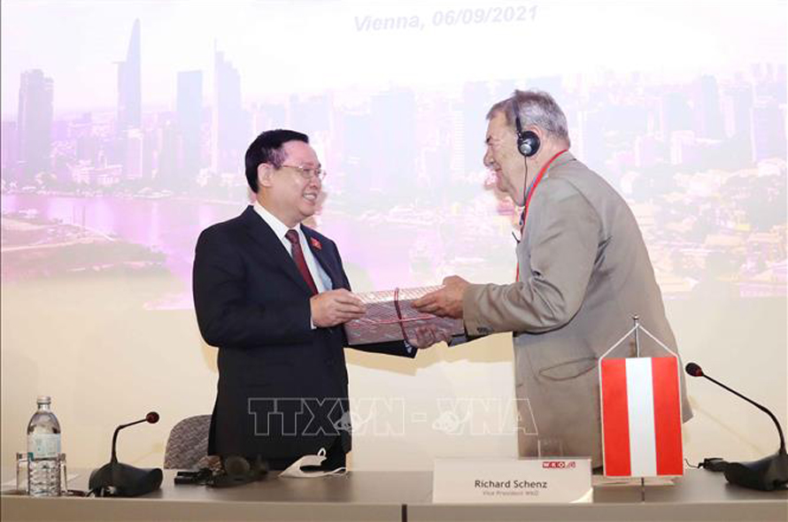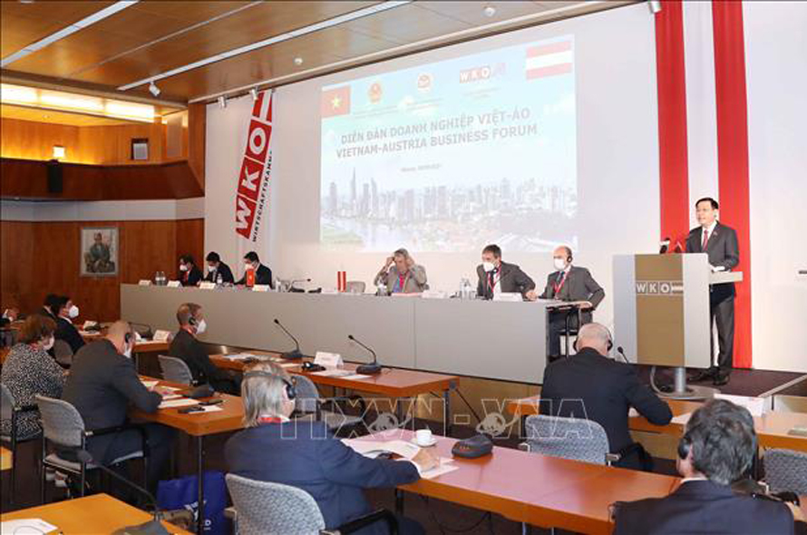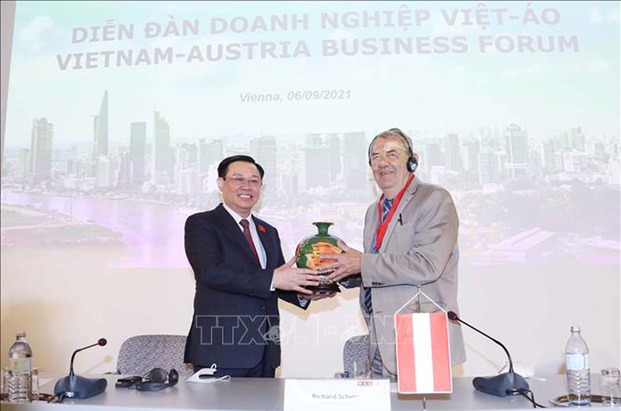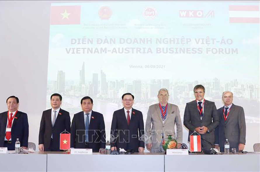 Sáng 6/9/2021 (theo giờ địa phương), tại Thủ đô Vienna (Cộng hòa Áo), Chủ tịch Quốc hội Vương Đình Huệ dự và phát biểu tại Diễn đàn Doanh nghiệp Việt - Áo.