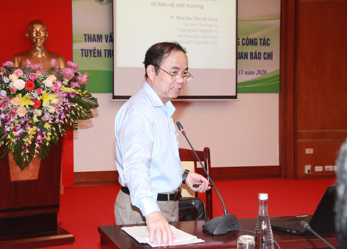 Nhà báo Trần Bá Dung, Ủy viên Ban Thường vụ, Trưởng Ban Nghiệp vụ Hội Nhà báo Việt Nam trong một buổi tập huấn nghiệp vụ cho các nhà báo, phóng viên.Ảnh: Lê Tâm