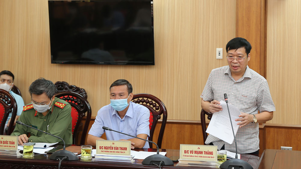 Báo cáo do đồng chí Vũ Mạnh Thắng, Ủy viên BTV Tỉnh ủy, Trưởng Ban Nội chính Tỉnh ủy nêu rõ: Thời gian qua, Ban đã chủ động, nghiêm túc tổ chức nghiên cứu, quán triệt, triển khai thực hiện Nghị quyết Đại hội Đảng các cấp theo đúng chỉ đạo của Thường trực Tỉnh ủy.
