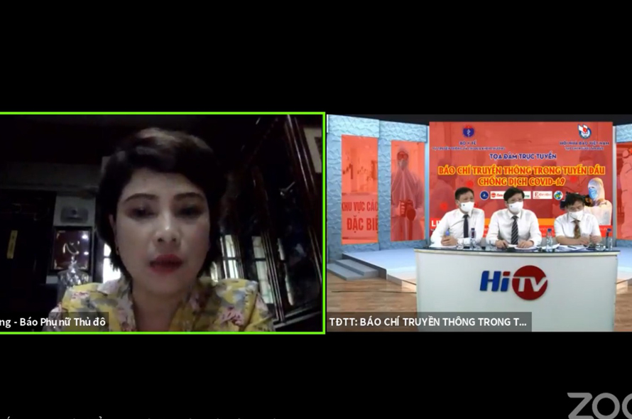 Nhà báo Lê Quỳnh Trang, Tổng Biên tập Báo Phụ nữ Thủ đô chia sẻ những kinh nghiệm của Báo Phụ nữ Thủ đô trong hoạt động thông tin phòng chống đại dịch Covid-19. Bên cạnh đó, nhà báo đã nêu thống kê về tình trạng bạo hành xảy ra tại các gia đình trong giai đoạn giãn cách xã hội vừa qua. Báo đã xây dựng chuyên mục "Tâm tình" dành cho các phụ huynh, các chuyên mục tư vấn sức khỏe cho người dân. Đặc biệt, Báo đã có tuyến bài về những phụ nữ bị mất việc làm trong đại dịch Covid-19. Ngoài ra nhà báo Lê Quỳnh Trang đã đề xuất một số chính sách cho người làm báo trong đại dịch Covid-19.