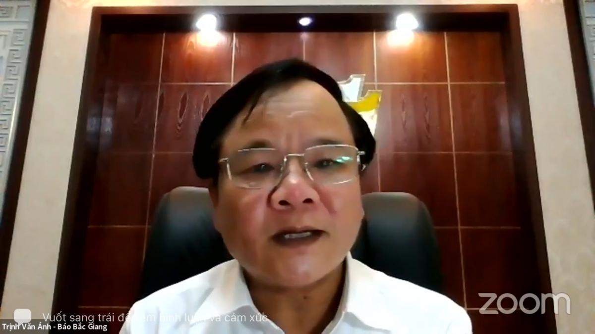Nhà báo Trịnh Văn Ánh - Ủy viên BCH Hội Nhà báo Việt Nam, Tổng Biên tập Báo Bắc Giang, Chủ tịch Hội Nhà báo Bắc Giang (đầu cầu Bắc Giang) đã chia sẻ những kinh nghiệm của Bắc Giang trong đợt dịch vừa qua. Những hoạt động sôi nổi của Hội Nhà báo tỉnh trong hoạt động thiện nguyện, những hoạt động bảo vệ phóng viên nhà báo tham gia tác nghiệp tại tâm dịch. Bên cạnh đó, Hội Nhà báo Bắc Giang đã tổ chức giải báo chí về phòng chống dịch Covid-19 tại tâm dịch Bắc Giang và đã nhận được sự tham gia tích cực của các phóng viên, nhà báo.