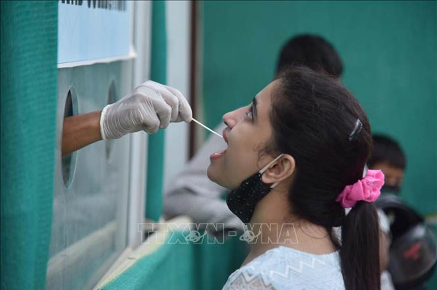 Nhân viên y tế lấy mẫu xét nghiệm COVID-19 cho người dân ở Guwahati, Ấn Độ . Ảnh: AFP/TTXVN