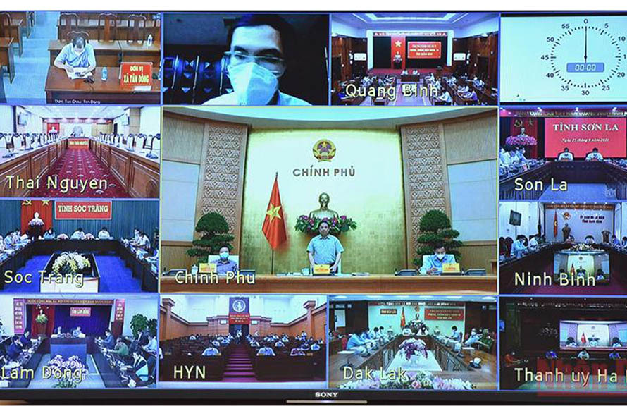 Sáng 25/9, tại Trụ sở Chính phủ, Thủ tướng Phạm Minh Chính, Trưởng Ban Chỉ đạo Quốc gia phòng, chống dịch Covid-19 chủ trì cuộc họp trực tuyến của Ban Chỉ đạo với 63 tỉnh, thành phố, kết nối tớCuộc họp nhằm đánh giá tình hình phòng, chống dịch Covid-19, rút ra bài học kinh nghiệm, kế hoạch, giải pháp và mục tiêu cụ thể để mở lại các hoạt động sản xuất, kinh doanh, sớm đưa cuộc sống của người dân trở về trạng thái bình thường mới. Cùng dự có các đồng chí Ủy viên Bộ Chính trị, Bí thư Trung ương Đảng, Ủy viên Trung ương Đảng. i 705 quận, huyện, 10.400 xã, phường, thị trấn thuộc các tỉnh, thành phố trực thuộc Trung ương.
