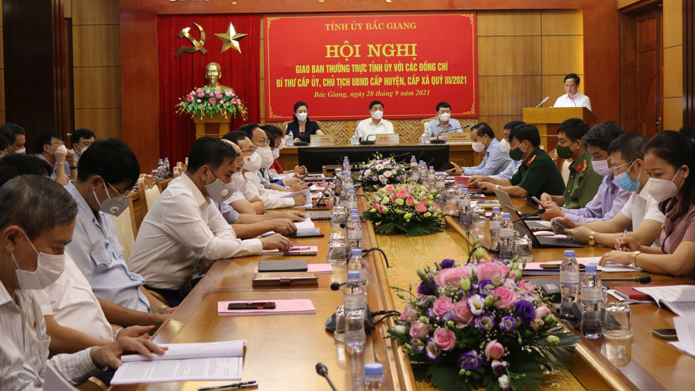 Ngày 28/9, Thường trực Tỉnh ủy Bắc Giang tổ chức hội nghị trực tuyến giao ban với các đồng chí bí thư cấp ủy, chủ tịch UBND cấp huyện, cấp xã trên địa bàn tỉnh.