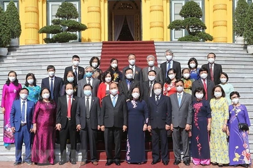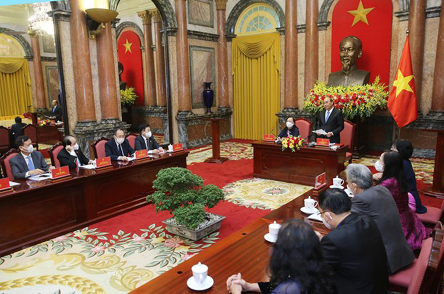 Chủ tịch nước Nguyễn Xuân Phúc và Đoàn đại biểu Trung ương Hội Người cao tuổi Việt Nam. (Ảnh: TTXVN)