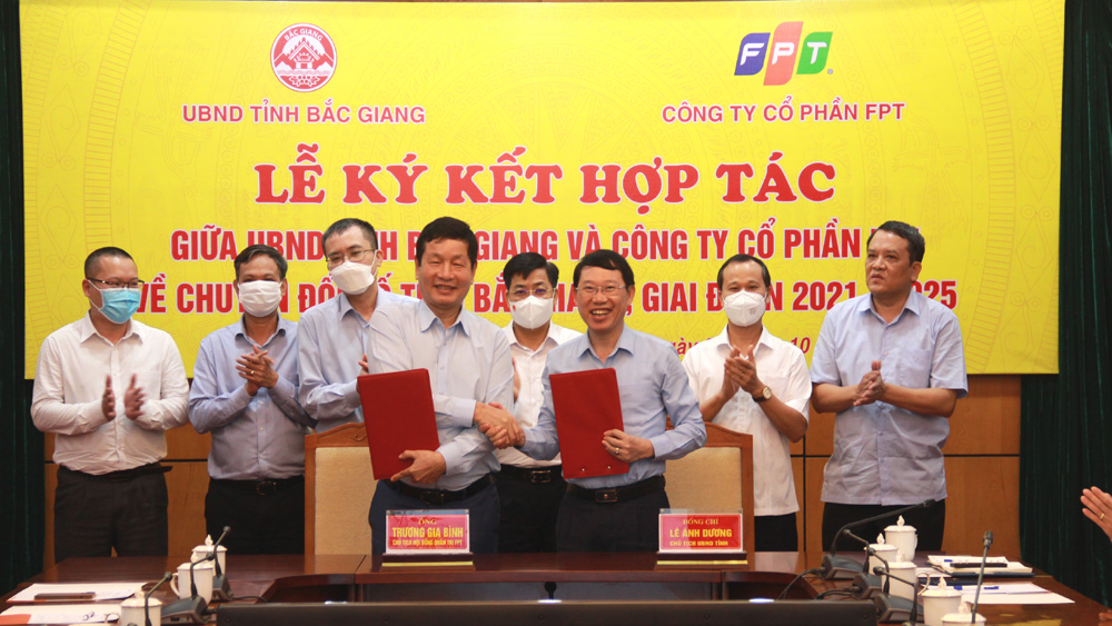 Đồng chí Lê Ánh Dương và ông Trương Gia Bình ký kết biên bản ghi nhớ hợp tác. Theo đó mục tiêu đề ra là huy động nguồn lực các bên nhằm đẩy mạnh CĐS trên địa bàn tỉnh Bắc Giang, chuyển đổi tổng thể và toàn diện từ cơ quan nhà nước, đến doanh nghiệp, người dân về cách sống, cách làm việc, phương thức sản xuất và tiêu thụ dựa trên công nghệ số.