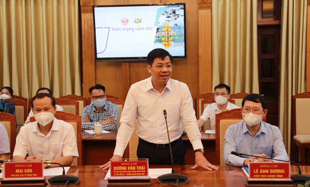 Phát biểu tại lễ ký kết, đồng chí Dương Văn Thái khẳng định quyết tâm chính trị của tỉnh về CĐS, đây là xu thế tất yếu để tỉnh nắm bắt cơ hội, tăng tốc phát triển, tuy nhiên đây là lĩnh vực khó, Bắc Giang chưa có nhiều kinh nghiệm. Do vậy đồng chí Bí thư Tỉnh ủy đề nghị FPT hỗ trợ, hợp tác chặt chẽ, hiệu quả hơn nữa đối với Bắc Giang.