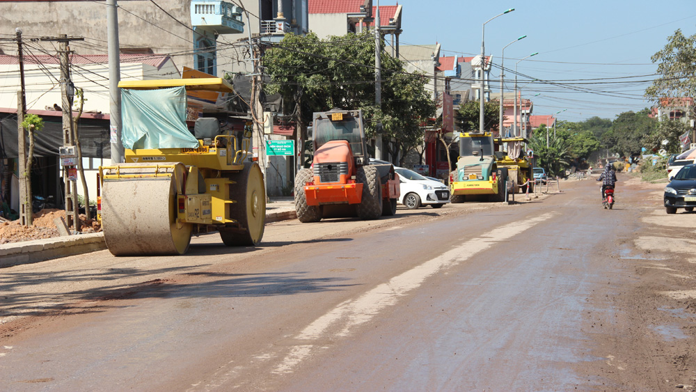 Đường tỉnh 292 đoạn qua thị trấn Bố Hạ (Yên Thế) đang được cải tạo, nâng cấp.