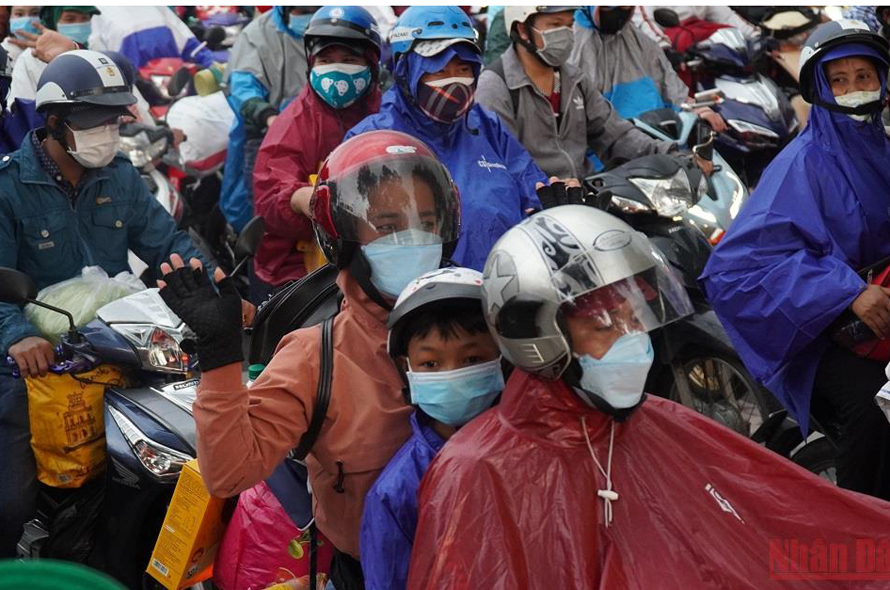Lần nào cũng vậy, cứ khi những chiếc xe máy cà tàng của hàng nghìn, thậm chí hàng chục nghìn công nhân chuẩn bị lăn bánh, trời lại đổ mưa. Thời khắc đó, có vẻ mọi người chẳng hề bận tâm những cơn mưa ào ạt, dai dẳng. Ai cũng chỉ đau đáu mong sao để đoàn xe lao đi sớm nhất, nhanh nhất, an toàn nhất. Mưa làm nặng thêm hành trang cực nhọc, ướt át, bất tiện cho trẻ em, phụ nữ mang thai và bao công nhân trai tráng cầm lái hàng trăm, hàng nghìn ki-lô-mét.