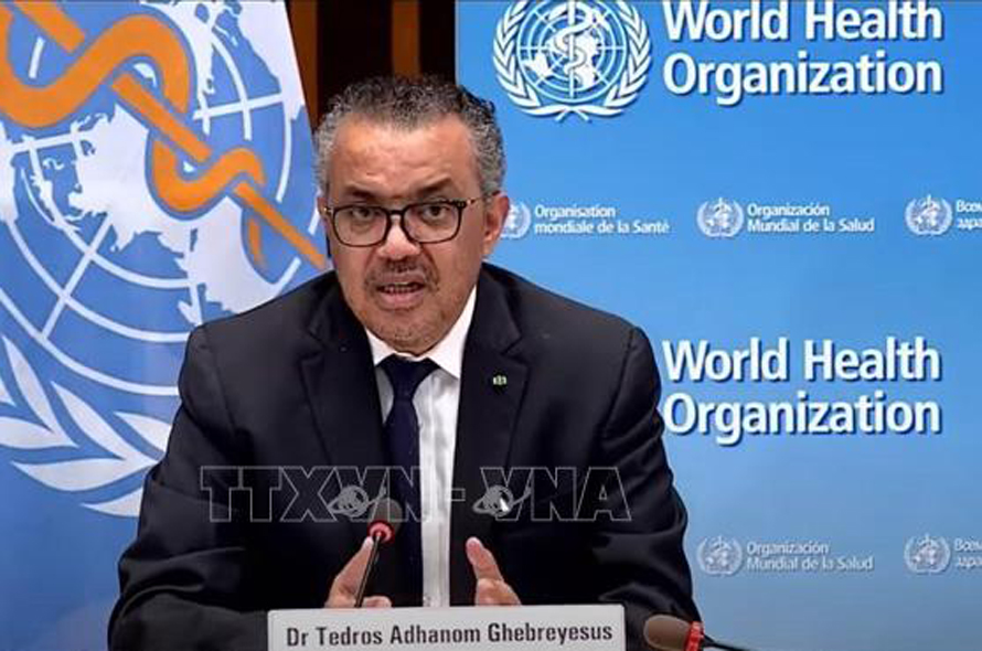 Tổng giám đốc Tổ chức Y tế thế giới (WHO) Tedros Adhanom Ghebreyesus phát biểu tại cuộc họp báo ở Geneva, Thụy Sĩ. Ảnh: THX/TTXVN