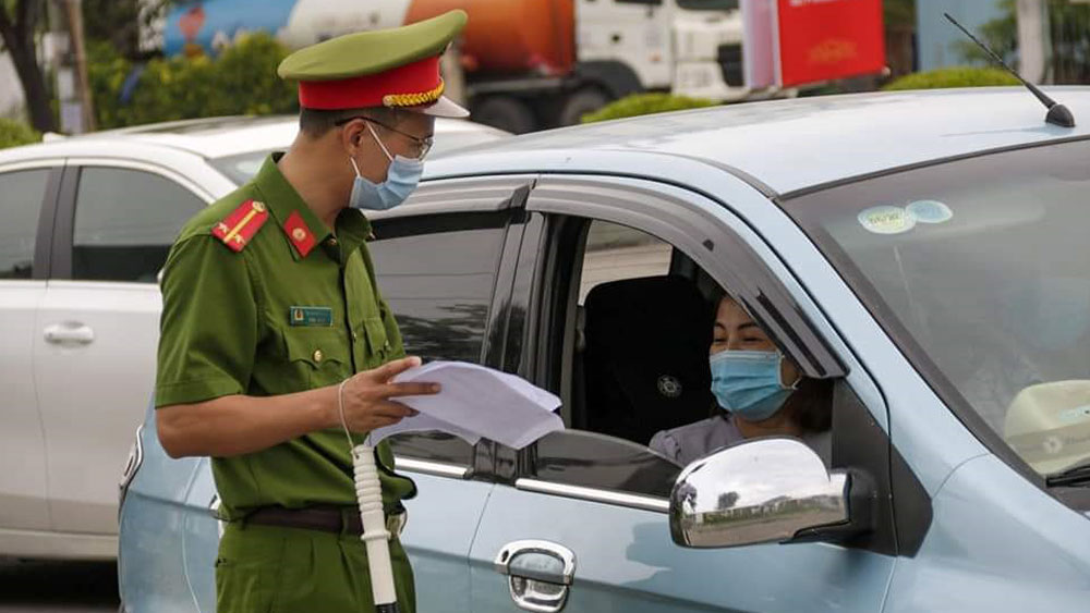 Lực lượng chức năng kiểm soát người vào tỉnh Bắc Giang. |