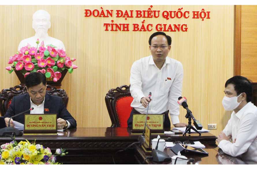 Tiếp tục chương trình kỳ họp thứ 2, Quốc hội khóa XV, ngày 21/10, Đoàn Đại biểu Quốc hội (ĐBQH) tỉnh Bắc Giang tiến hành thảo luận tổ, đóng góp nhiều ý kiến về công tác phòng, chống dịch (PCD) Covid-19, kế hoạch phát triển KT-XH, dự thảo Luật Cảnh sát cơ động, dự thảo Luật Sở hữu trí tuệ.
