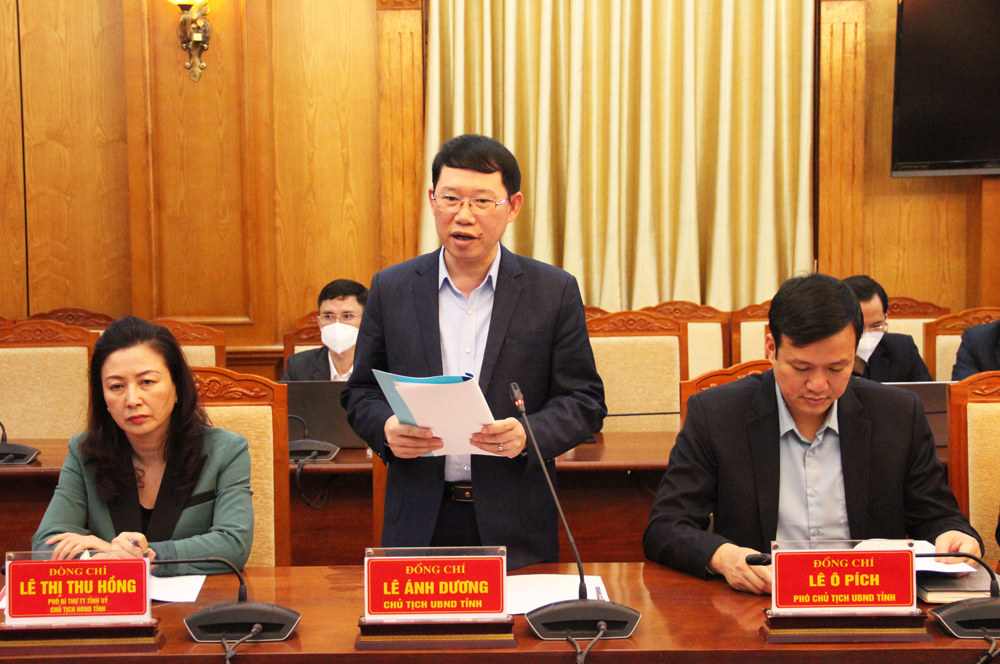 Đồng chí Lê Ánh Dương báo cáo một số kết quả PCD, khôi phục sản xuất của Bắc Giang. |