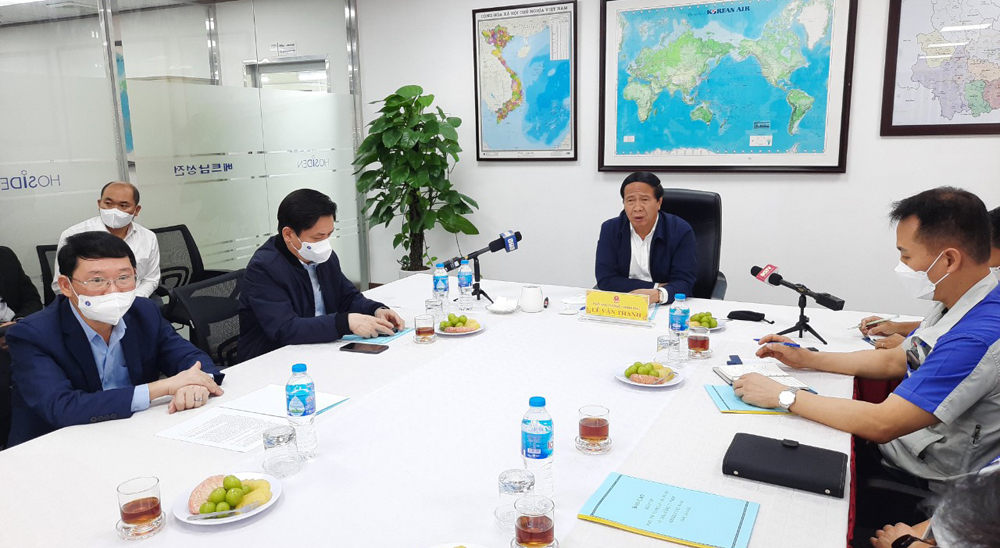 Làm việc với lãnh đạo tỉnh và kiểm tra thực tế tại Công ty TNHH Hosiden Việt Nam (KCN Quang Châu), đồng chí Lê Văn Thành đánh giá cao sự chỉ đạo quyết liệt, sáng tạo của Bắc Giang trong PCD Covid-19.