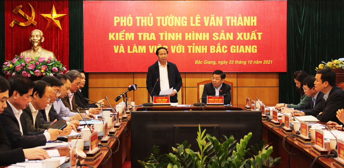 Ngày 23/10, Phó Thủ tướng Chính phủ Lê Văn Thành dẫn đầu đoàn công tác làm việc tại Bắc Giang về khôi phục sản xuất sau dịch.