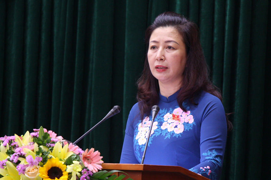 Đồng chí Lê Thị Thu Hồng phát biểu khai mạc kỳ họp.