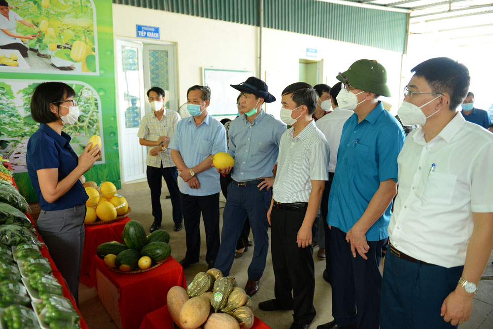 Đoàn công tác của Văn phòng Điều phối NTM T.Ư thăm khu sản xuất nông nghiệp công nghệ cao của HTX rau sạch Yên Dũng, tại xã Tiến Dũng.