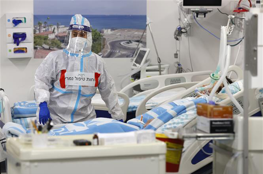 Điều trị cho bệnh nhân nhiễm COVID-19 tại bệnh viện ở Haifa, Israel. Ảnh: AFP/TTXVN