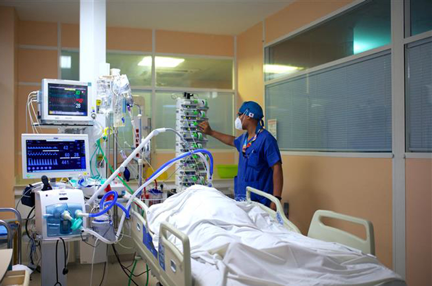Nhân viên y tế điều trị cho bệnh nhân COVID-19 tại bệnh viện Les Abymes ở Pointe-a-Pitre, Pháp. Ảnh: AFP/TTXVN