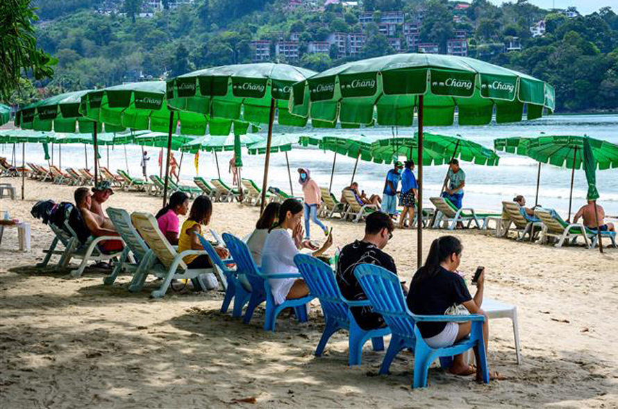 Khách du lịch trên bãi biển ở Phuket, Thái Lan, ngày 28/10/2021. Ảnh: AFP/TTXVN