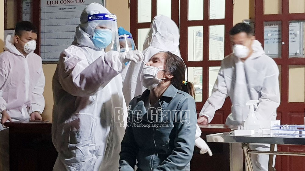 Nhân viên y tế lẫy mẫu xét nghiệm cho giáo viên Trường Mầm non Đông Sơn. Ảnh Hải Vân |
